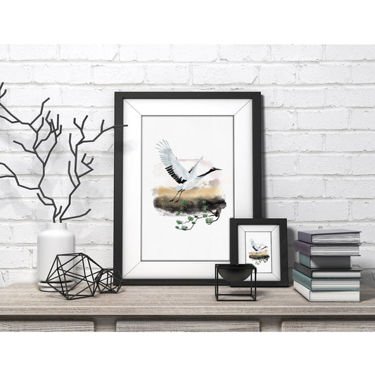 Serene Crane Japanese Watercolor Art Print