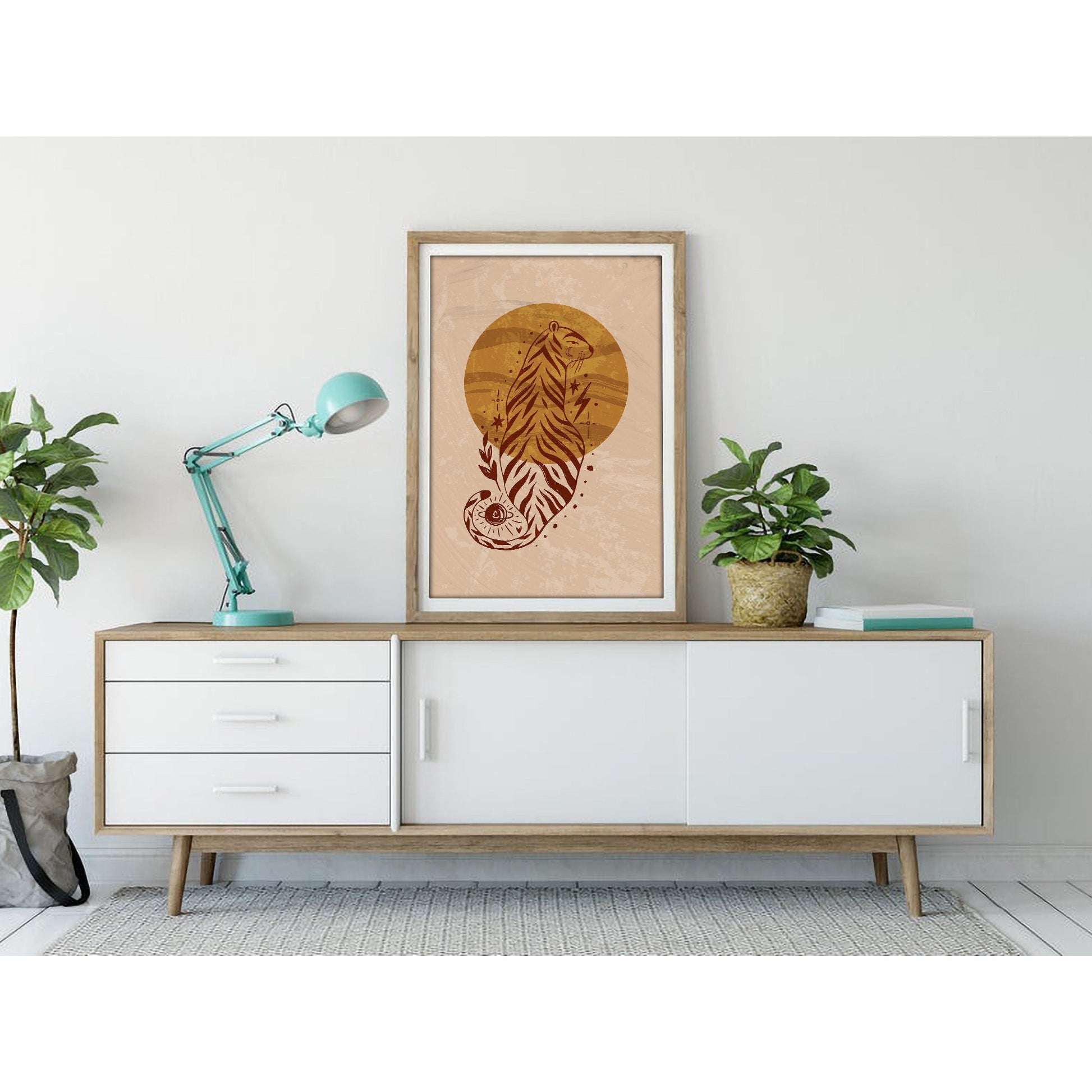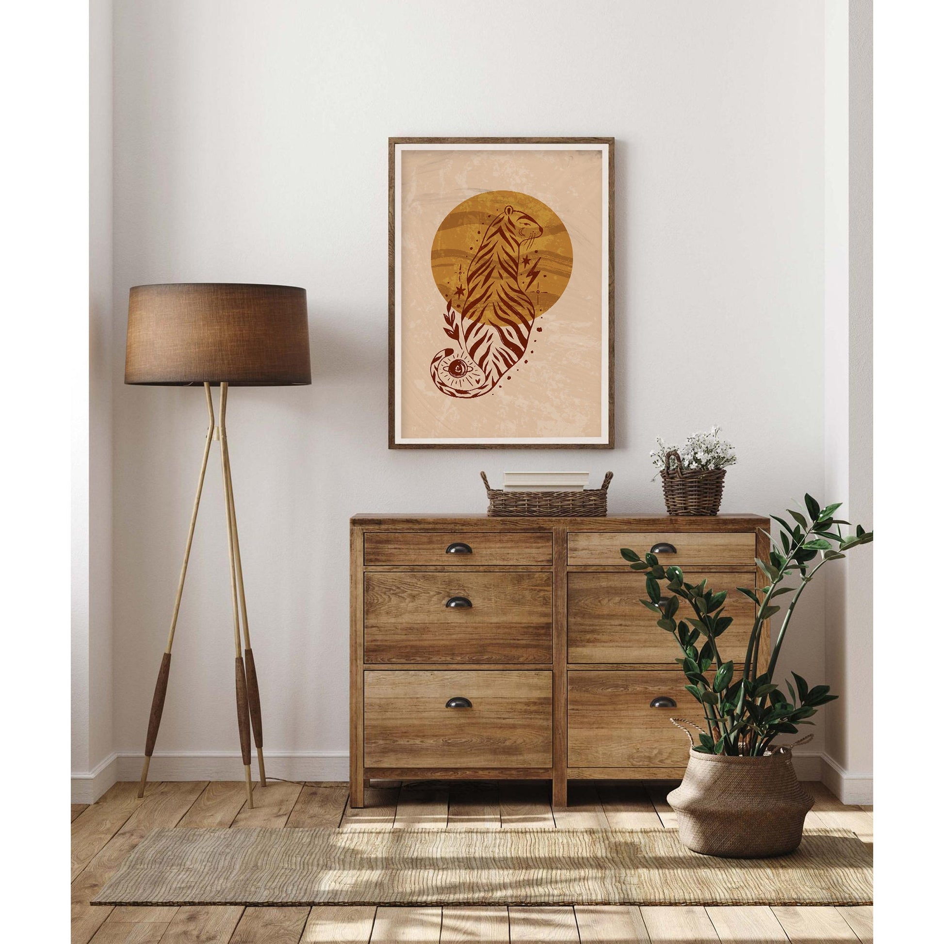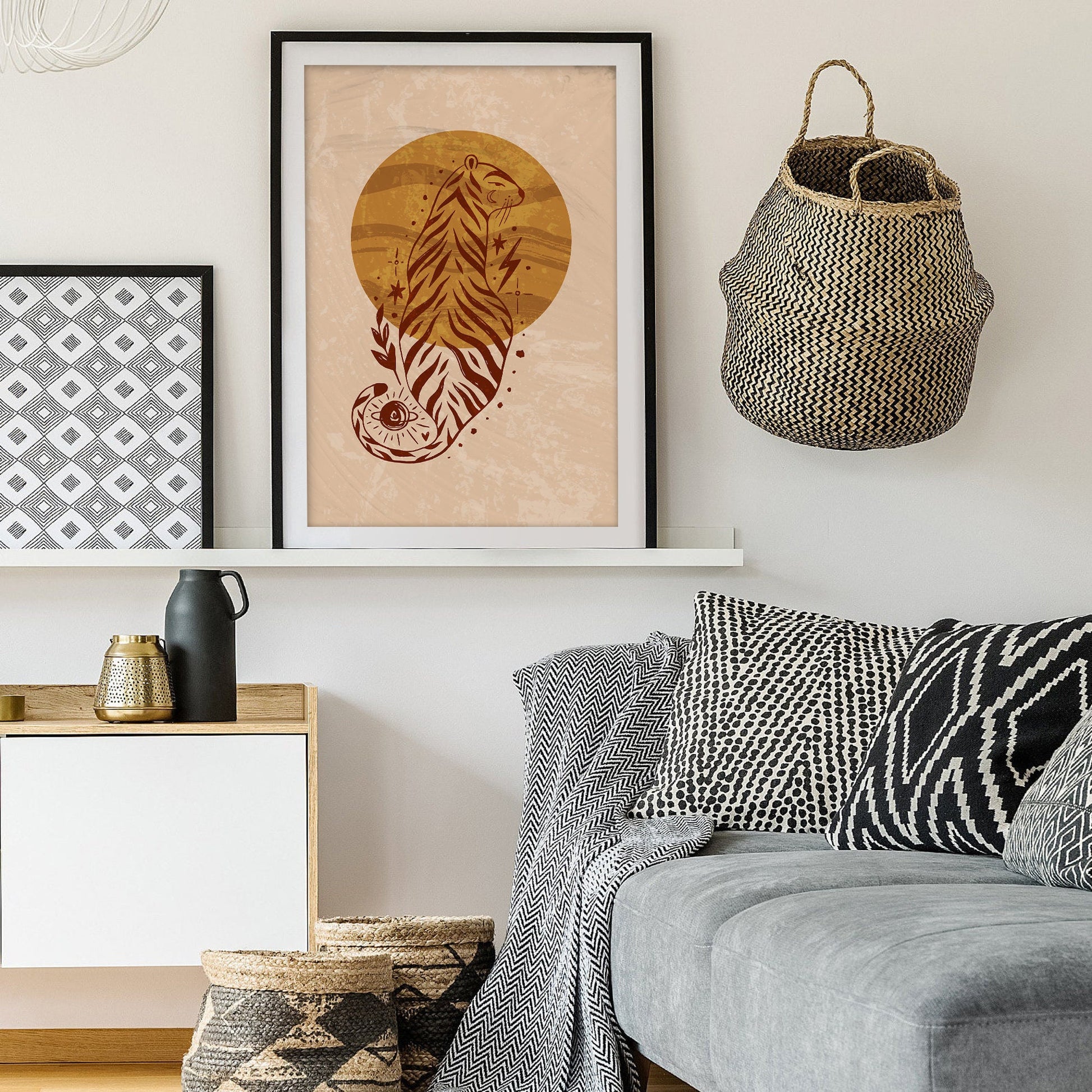 Embrace the power and mystery of our Mystical Tiger Art Print, where the wild meets the wondrous. This print features a beautifully detailed tiger, rendered with a mix of bohemian and celestial styles, set against a golden, star-filled circle that captures the imagination. Ideal for fans of luna and feminist art, this piece blends animal majesty with mystical elements to create a captivating visual experience. It's perfect for those who love unique art that serves as a focal point in any room, offering a story that compels the viewer to return again and again.