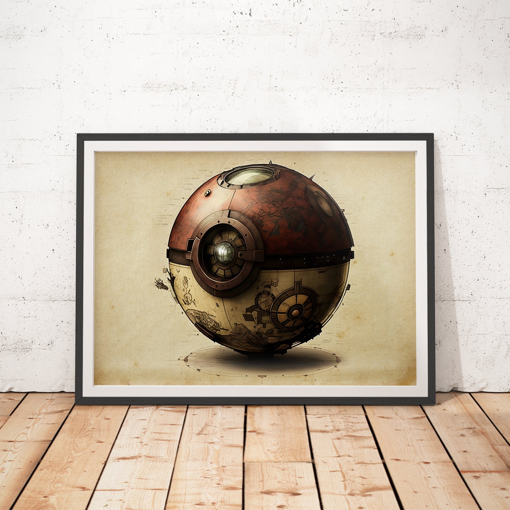 Step into a the world of Pokemon with our Pokeball Art Print. This unique art piece, inspired by Leonardo DaVinci's technical sketches, captures the essence of Pokemon with a vintage twist. Perfect for gamers and movie lovers, this print adds a touch of geek decor to any room. Ideal for teen bedroom decor or as a standout piece for collectors, it’s a fantastic example of fusion art style, blending classical art with modern gaming elements. A must-have for anyone who appreciates unique art prints and pop culture collectibles.