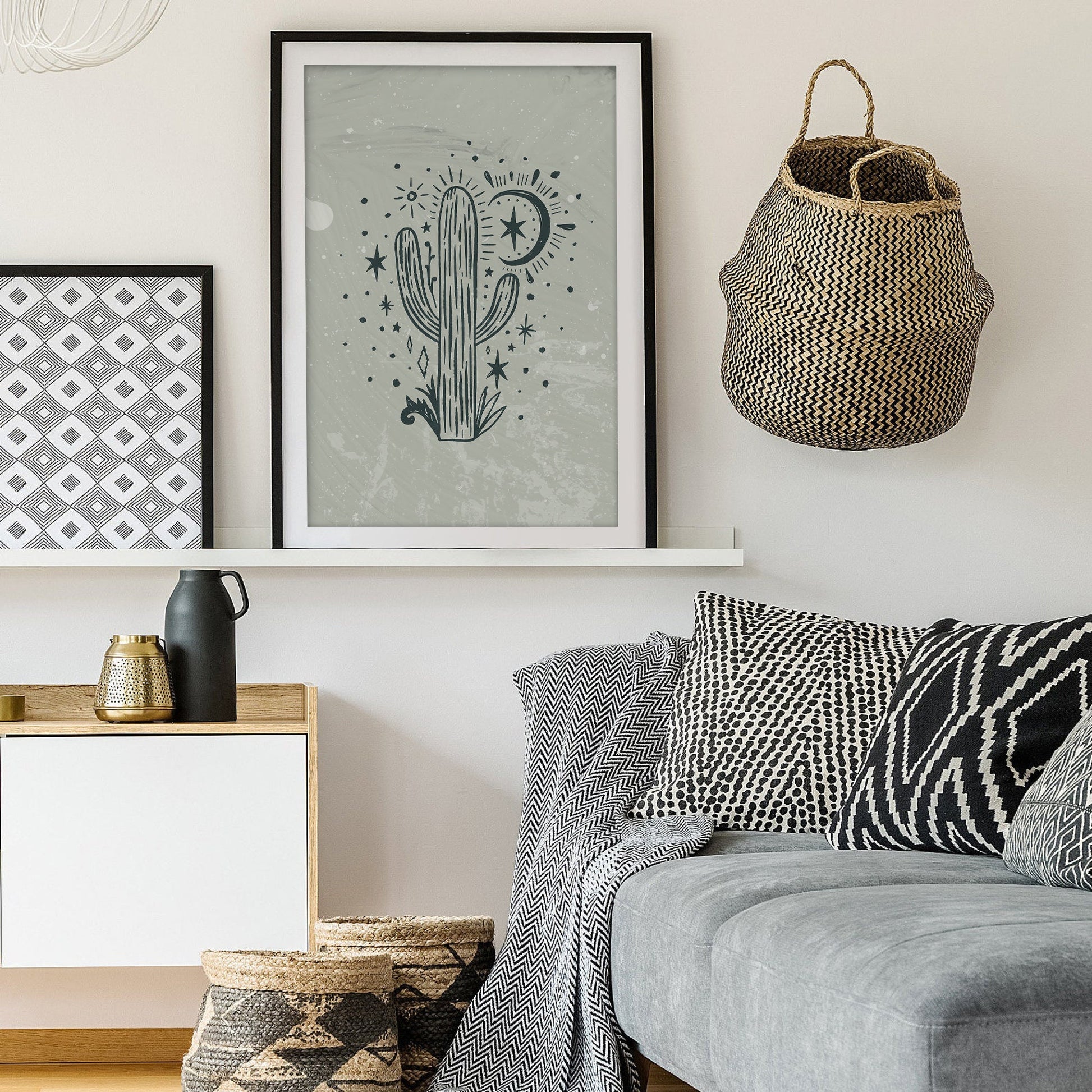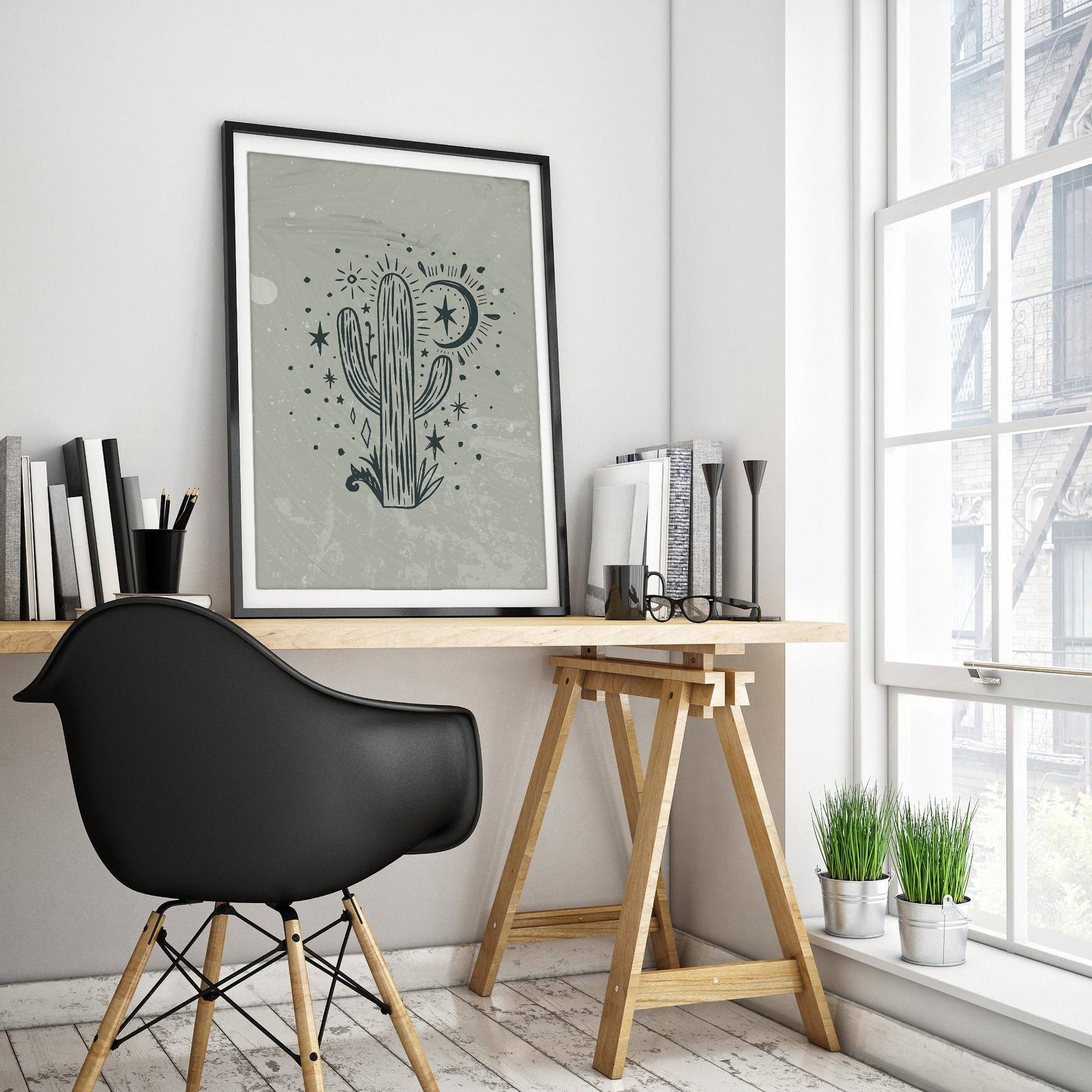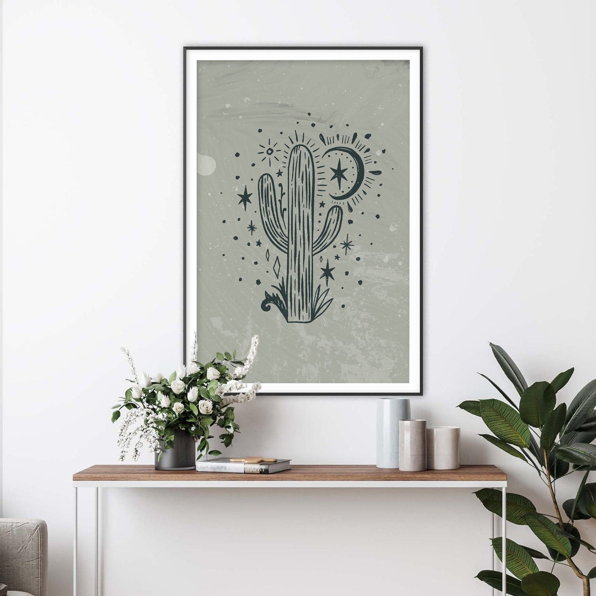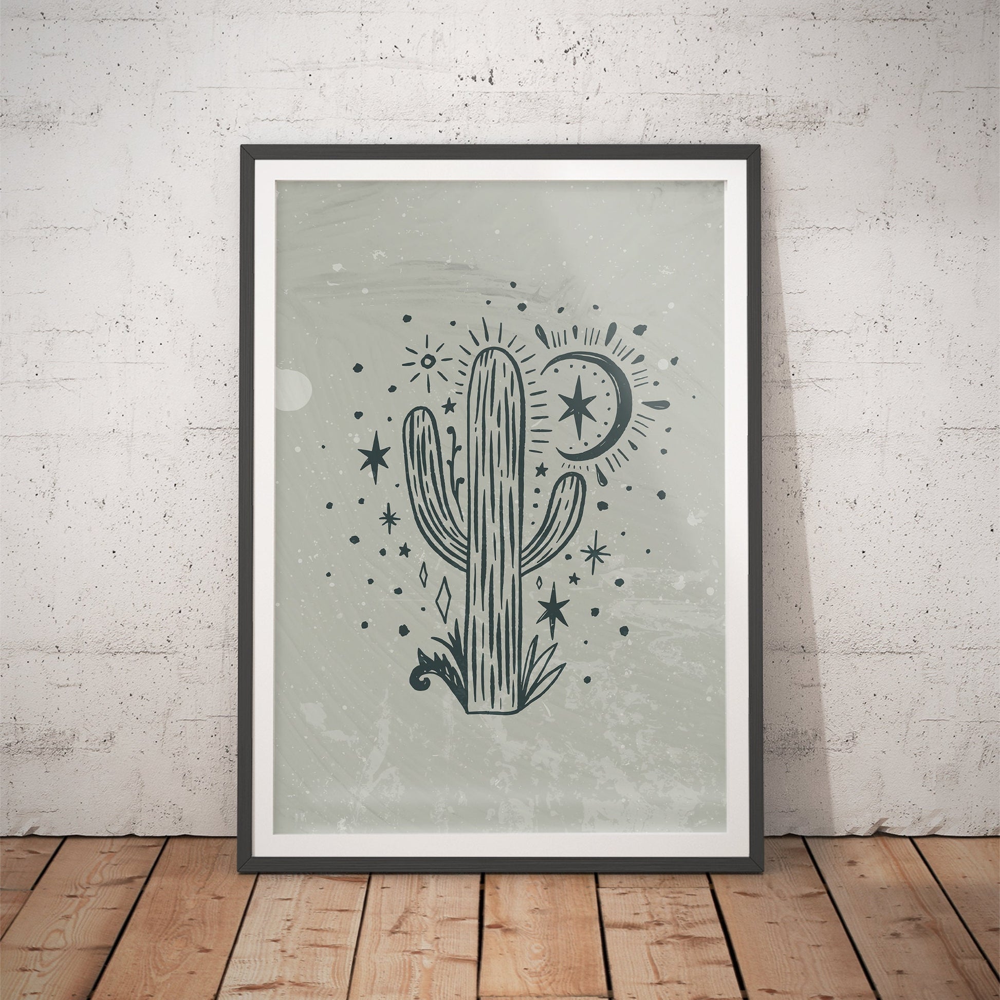 Welcome to the enchanting world of the Stellar Cactus Art Print, a must-have for lovers of both celestial and minimalist art. This striking print captivates with its simple yet profound depiction of a cactus set against a backdrop filled with stars and cosmic symbols, making it an ideal choice for modern art enthusiasts and followers of luna art. It's perfect for anyone looking to bring a touch of understated yet deep celestial beauty into their living space. This piece is particularly suitable for those who appreciate art that tells a story without overwhelming the viewer. Its unique blend of natural and mystical elements makes it a compelling addition to any home.